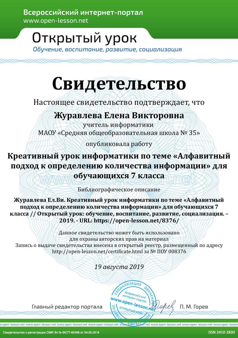 Конспект урока информатики по теме «Алфавитный подход к определению количества информации» в 7 классе