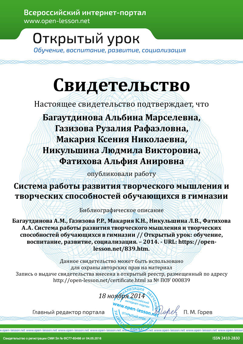 Key words: system, FSES, creative thinking, creative abilities, lesson, extracurricular activities, career-oriented lessons