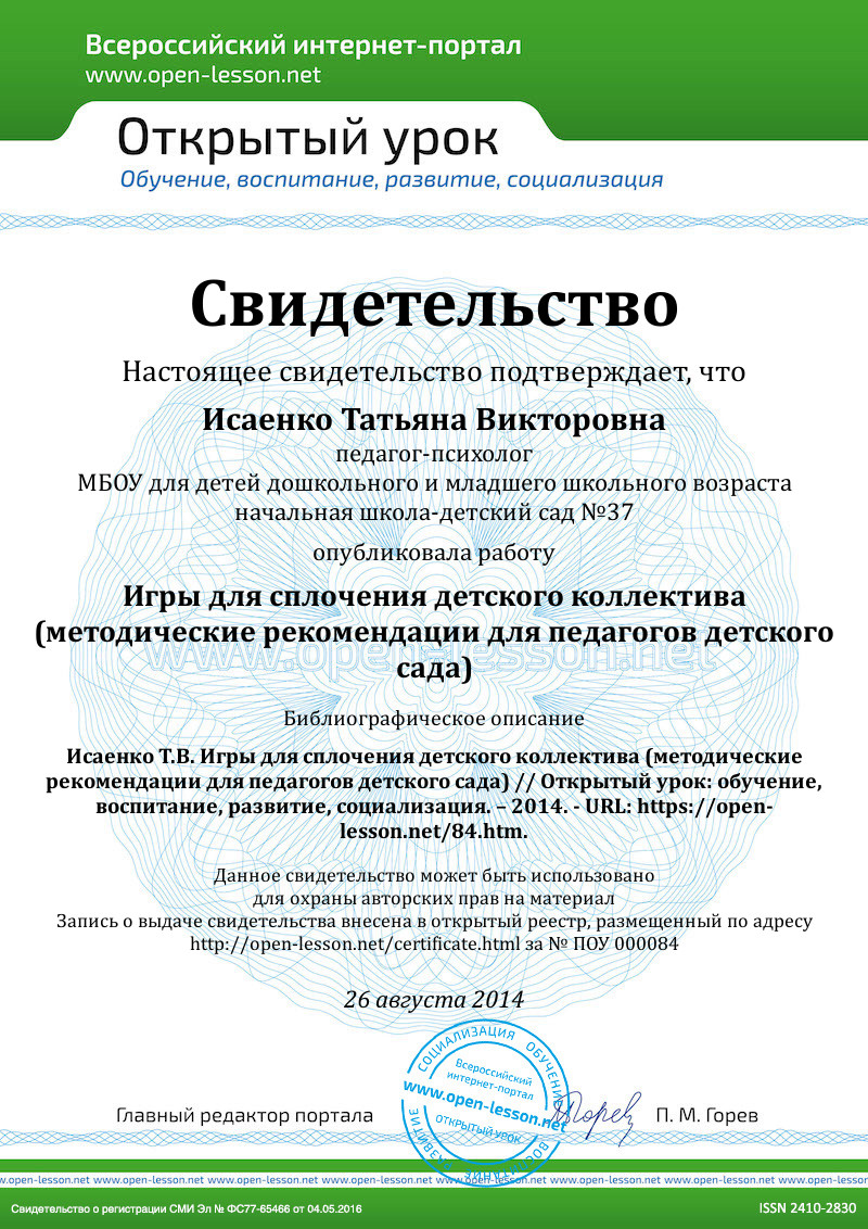 - Журнал «Дошкольное воспитание» №6, 1998г