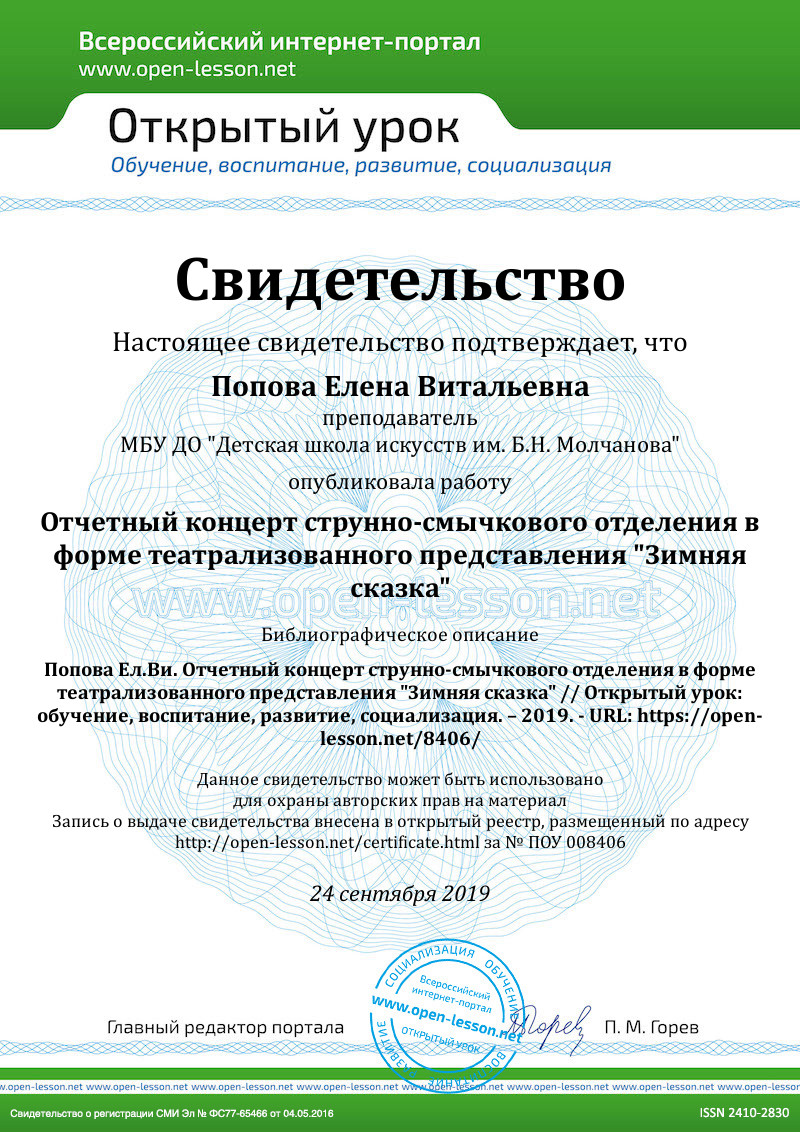Этот сценарий будет интересен для преподавателей музыкальных школ. Отчетные концерты школ и музыкальных отделений гораздо интереснее и красочнее проходят в форме театрализованного концерта. Такие концерты привлекают множество зрителей, а юные музыканты работают над постановкой с большим увлечением чем в традиционном концерте. Мне очень нравиться проводить отчетные концерты отделения в форме театрализованного представления, так как можно задействовать в мероприятии всех учащихся на отделении. Ребята, которые не достаточно хорошо владеют музыкальным инструментом могут играть роли, участвовать в массовых сценах. В концерт входит большое количество номеров, позволяющих ученикам продемонстрировать свои успехи. Дети с огромным удовольствием работают над постановкой, предлагают свои идеи, творческие решения каких-либо эпизодов. Концерт в форме театрализованного представления помогает творчески раскрыться детям, а также позволяет и родителям принять участие в подготовке представления.
