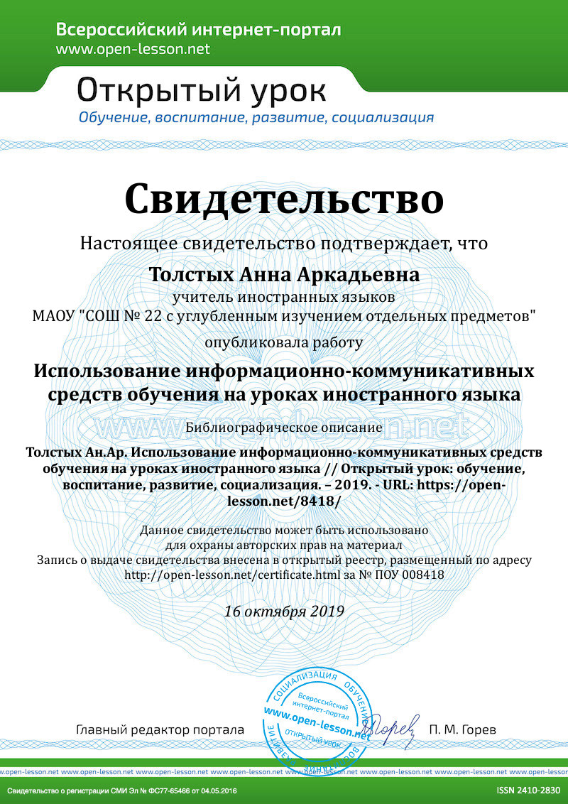 Цель статьи: показать значимость использования информационно-коммуникативных средств при изучении иностранного языка