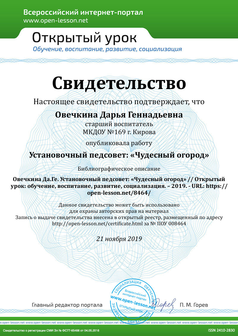Коллеги, сегодня наш педсовет пройдет в форме педагогической гостиной. Тема педсовета – «Чудесный огород». (На экране – название педсовета.) Почему огород? Потому что в нашем коллективе сегодня «произрастет» много новых замечательных идей. Почему чудесный? Потому что вы – творцы и кудесники, вы делаете жизнь своих воспитанников занимательной и чудесной.