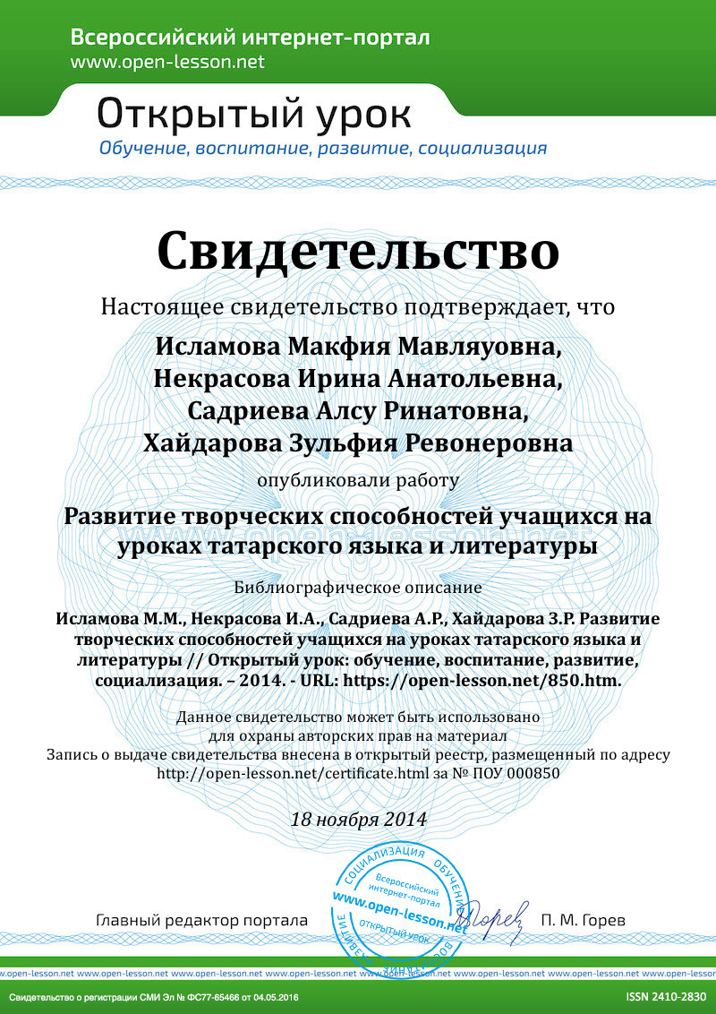 teacher of tatar language and literature gymnasium № 77, Nab. Chelny