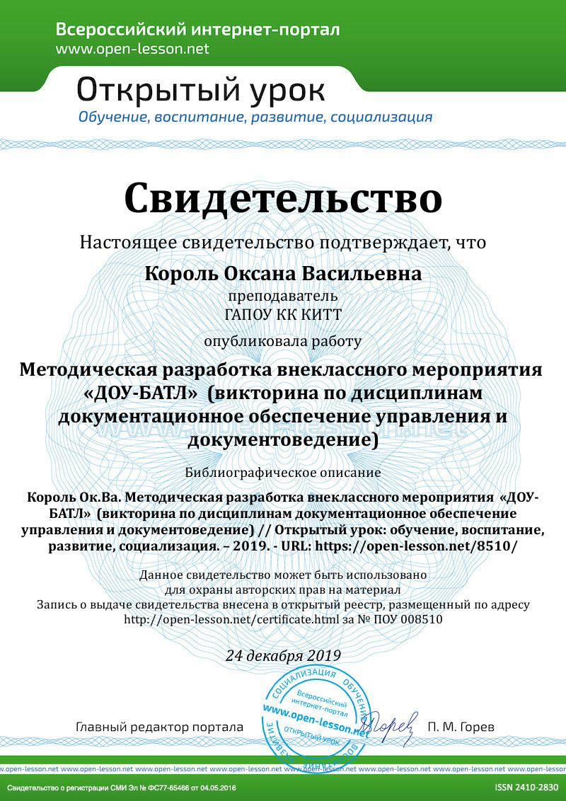Преподаватель: Документы сопровождают нас в течение всей жизни, в приятные, значимые для нас события и не только. И сегодняшняя Викторина поможет понять, насколько мы хорошо знаем, как составляются документы.
