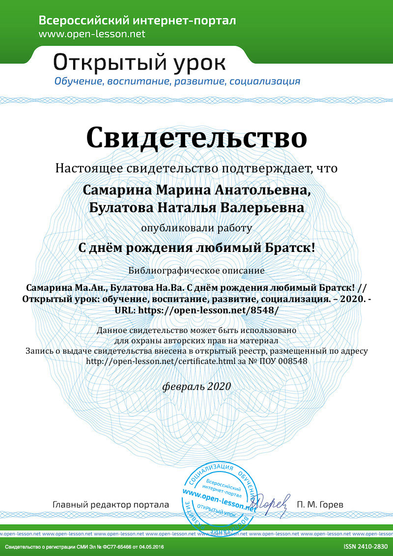 - Жернаков Ю. Братский Букваренок/ Братск, Городская типография, 2005.