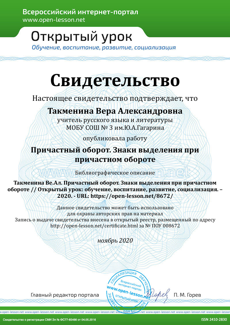 Ученик: Употребление причастий и причастных оборотов характерно для письменной речи. Их часто используют поэты и прозаики. Мы выяснили, что причастия изменяют текст, вносят в него дополнительные сообщения, придают динамику и образность, яркость описания.