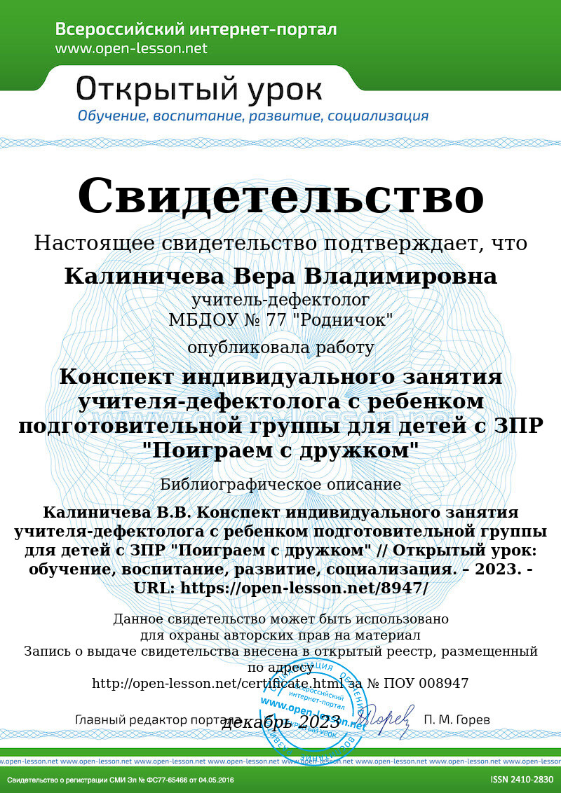 Конспект индивидуального занятия учителя-дефектолога с ребенком подготовительной группы для детей с ЗПР