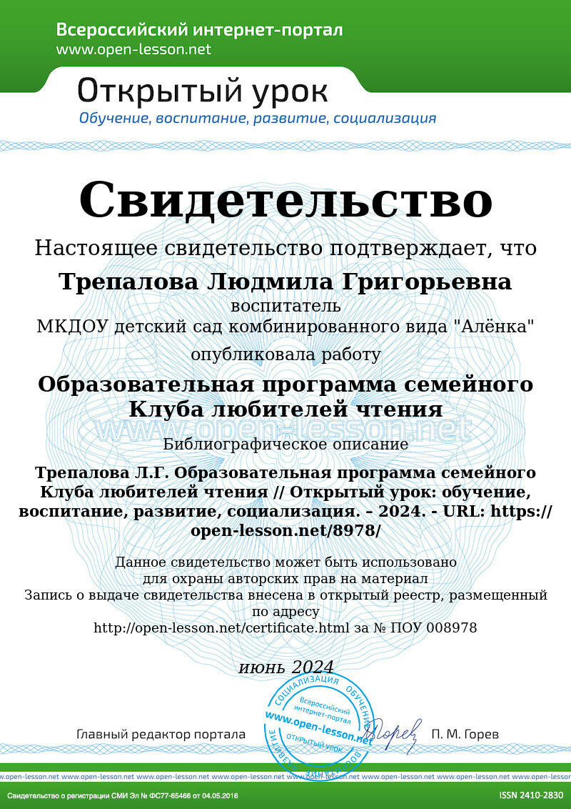 Подарить счастье своему ребёнку быть настоящим читателем – забота родителей, поэтому и появился такой термин детско-взрослое чтение. Это чтение объединяет, сохраняет доверие между взрослым и ребёнком. Но особую роль помощника и собеседника может выполнить взрослый, если осознает и примет ценность чтения в воспитании и свою ответственность за результаты общения со своими детьми. К сожалению, большинство родителей недооценивают важность и ценность совместного чтения и общения с ребёнком. С целью создания условий для осмысления родителями важности семейного чтения и формирования педагогически обоснованной позиции в отношении приобщения к чтению собственного ребенка и создана программа Клуба любителей чтения.