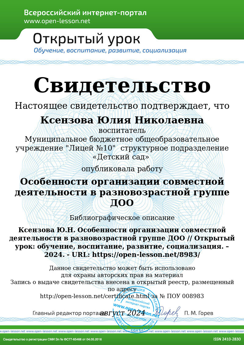 Организация совместной деятельности в разновозрастной группе — это эффективный метод, поддерживающий гармоничное развитие детей, формирование у них социальных и личностных навыков. Применение различных методов и подходов обеспечивает интерес и активное участие всех детей, что значительно повышает качество дошкольного образования и подготавливает их к дальнейшему успешному обучению.