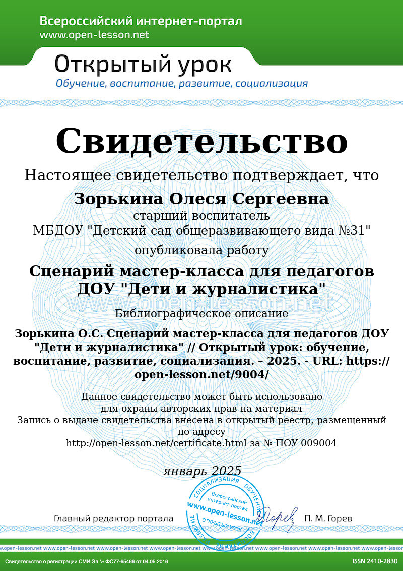 4слайд (на слайде: С.М. Жарков и А.Ю. Дейкина,а так же доктор педагогических наук, профессор А.Н. Орлов). Коллеги, вы убедились, что дети имеют представление о профессии журналиста. Детская журналистика – это реальность, и каждый педагог