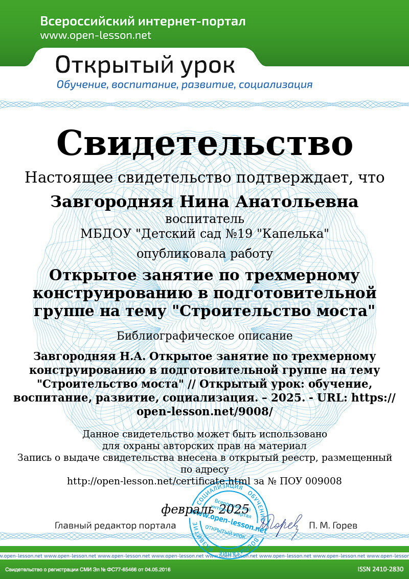 Воспитатель: Спасибо вам за прекрасные постройки. Скажите, чем является мост?