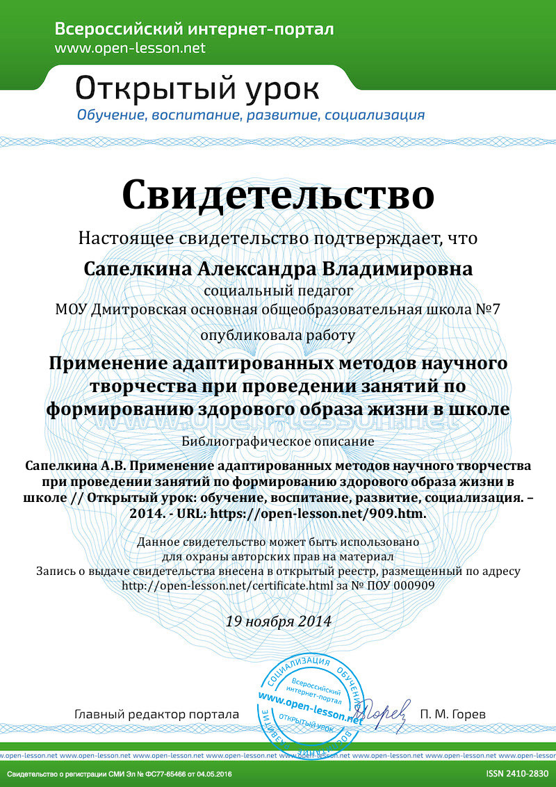Пример занятия по пропаганде здорового образа жизни с использованием адаптированных методов научного творчества, проведенного в рамках работы социального педагога.