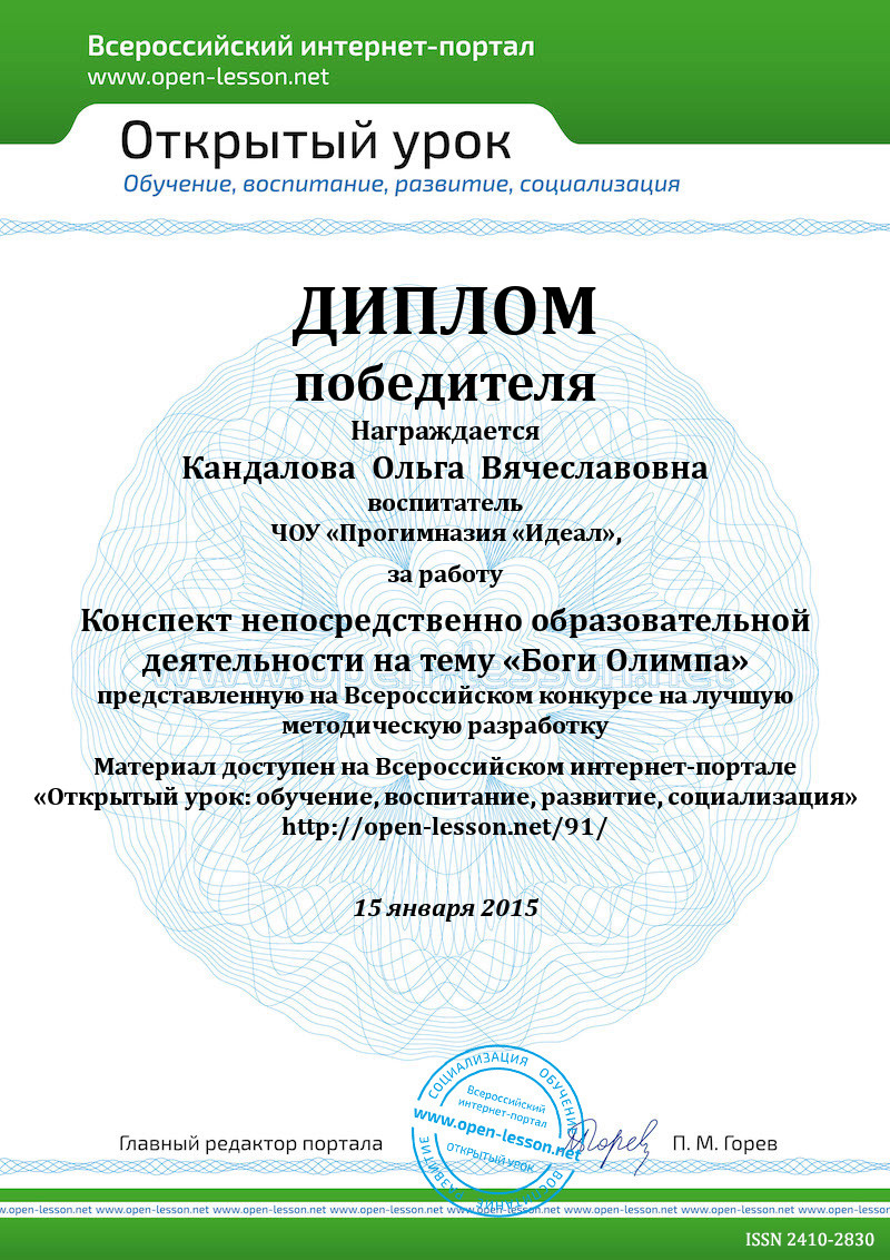 Зевс: Молодцы, не ошибся я в вас, со всеми заданиями справились. И теперь по праву верховного судьи я принимаю вас в высшую школу богов и дарю вам лавровые венки. А кто из вас знает, что символизирует этот венок из лавра? (Ответы детей: символ триумфа и доблести).