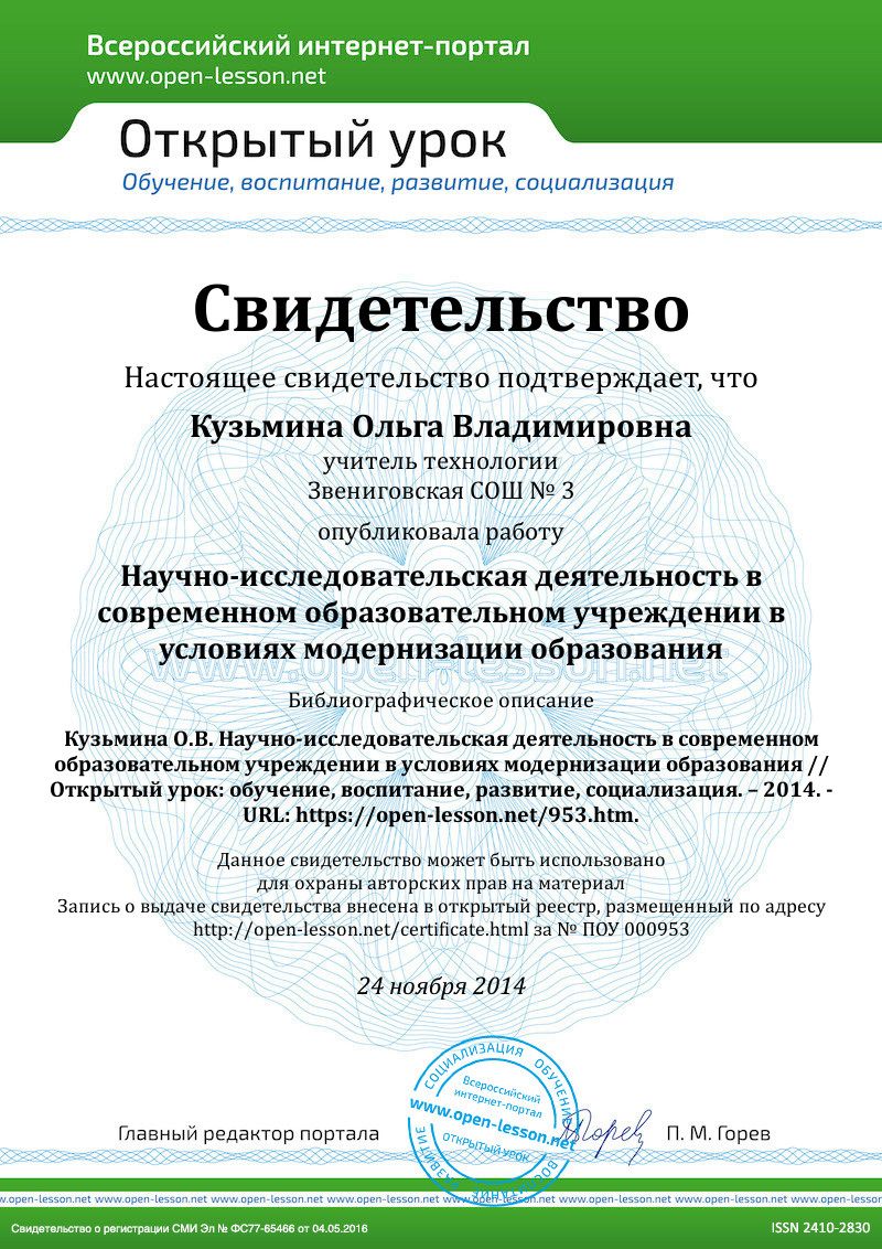 5. «Исследовательская работа школьников». Научно-методический и информационно-публицистический журнал. Редакция «Народное образование».