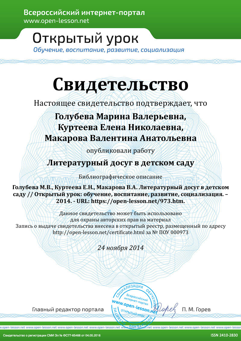 Авторы: Голубева Марина Валерьевна, Куртеева Елена Николаевна, Макарова Валентина Анатольевна